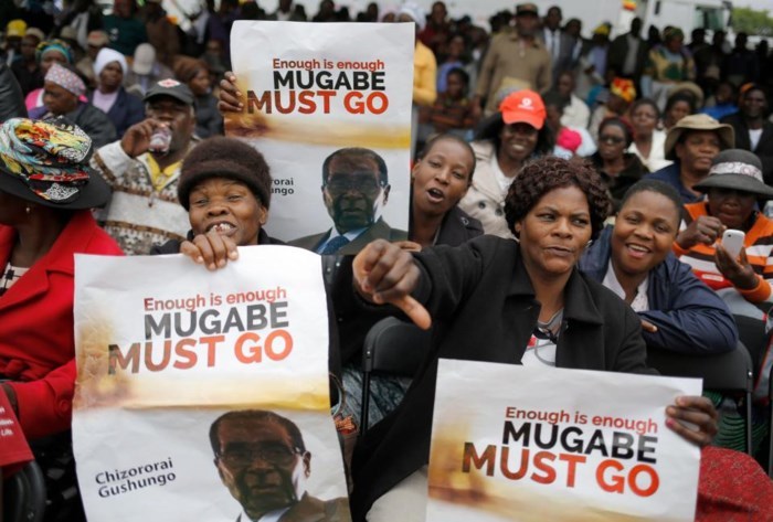 Vị lãnh đạo cấp cao đã khai sinh ra đất nước Zimbabwe, giờ đã 93 tuổi, ông muốn dọn đường cho người vợ trẻ, kém ông 41 tuổi lên kế nhiệm. Ông đã sa thải Phó Tổng thống Emmerson Mnangagwa, người từng có thỏa thuận ngầm rằng sẽ không tranh giành chức Chủ tịch Đảng ZANU-PF cầm quyền để có thể ra tranh cử tổng thống vào năm 2018. Hậu quả là quân đội đã hành động chống lại ông, áp dụng quy chế quản thúc tại gia đối với ông và vợ.