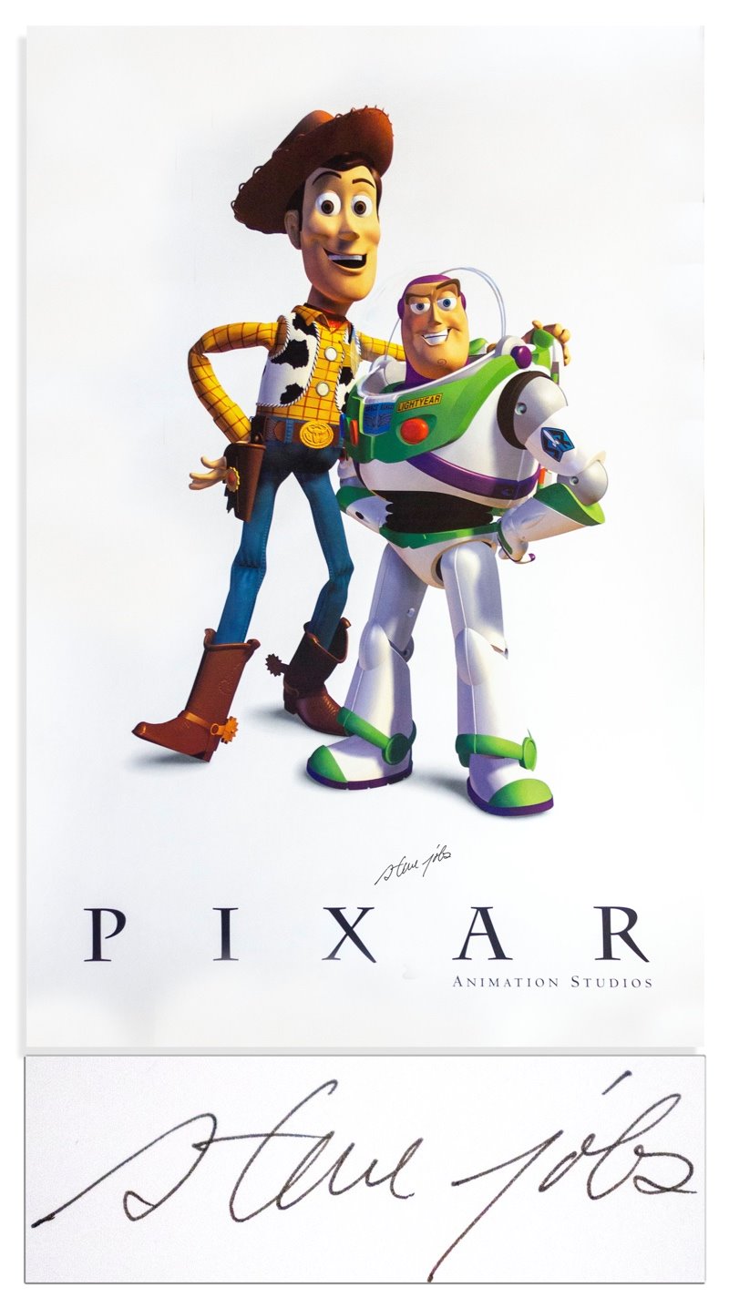 Steve Jobs được cho là đã ký vào tấm poster khoảng năm 1995 khi Toy Story ra mắt phần phim thứ nhất. Đây là bộ phim dài đầu tiên của Pixar và đã thu được thành công rực rỡ, khiến Pixar trở thành một trong những hãng phim hoạt hình lớn nhất thế giới.