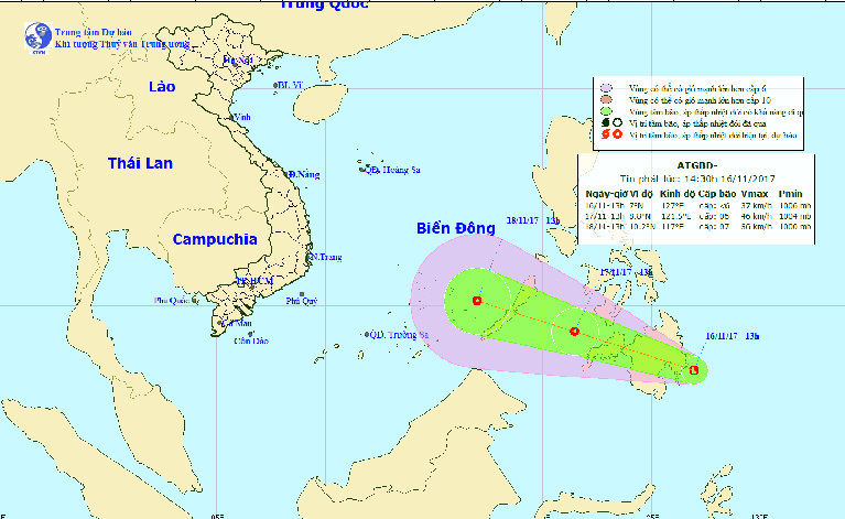 Chiều nay, khu vực phía đông miền nam Philippines xuất hiện một vùng áp thấp. Lúc 13h, vị trí trung tâm vùng áp thấp hiện cách đảo Palawan (Philippines) khoảng 900 km về phía đông nam.