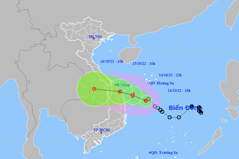 Theo Trung tâm dự báo khí tượng thuỷ văn quốc gia, hồi 10h ngày 14/10, vị trí tâm áp thấp nhiệt đới ở vào khoảng 14,3 độ Vĩ Bắc; 111,5 độ Kinh Đông, trên khu vực giữa Biển Đông, cách Đà Nẵng - Quảng Nam khoảng 310km về phía Đông Đông Nam.