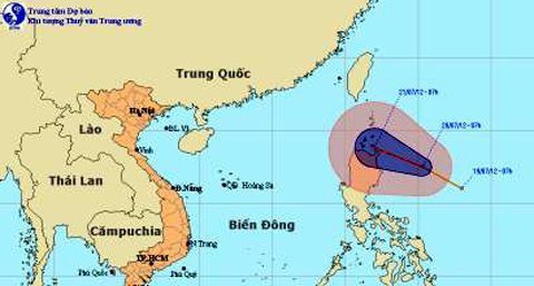Bắc; 125,3 độ Kinh Đông, cách đảo Lu - Dông (Philippin) khoảng 350km về phía