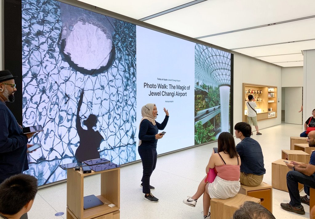 Trong buổi khai trương Apple Store Changi, những khách hàng đầu tiên được tham dự buổi học chụp ảnh ngắn kéo dài 1 tiếng có tên “The Magic of Jewel Changi AirPort Photo”. Họ được học các kỹ thuật chụp ảnh mới bằng iPhone, iPad trong khi khám phá kiến trúc của sân bay như kiến trúc hiện đại, vườn trong nhà, thác nước 40m. Ngoài ra, họ cũng được tặng áo phông độc quyền của Apple.