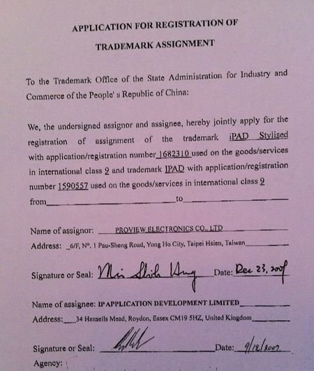 Tuy nhiên, đáng chú ý, trong số những giấy tờ bằng chứng này còn có một ghi chú rằng thương hiệu iPad vẫn thuộc về “một công ty Đài Loan”, tuy nhiên, công ty này không có trụ sở tại Thâm Quyến, nghĩa là không phải thuộc về Proview Technology, vốn là công ty đang gây khó dễ với thương hiệu iPad của Apple.
