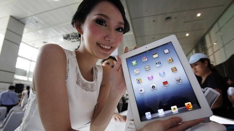 Một người mẫu giới thiệu sản phẩm iPad thế hệ thứ ba tại một cửa hàng iStore ở Bangkok, Thái Lan - Ảnh: Reuters