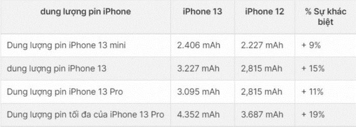 Mặc dù không có thông tin dự kiến nào cho biết về kích thước pin của bất kỳ mẫu iPhone 14. Nhưng có lẽ ít nhất chúng ta có thể xem qua kích thước pin của iPhone 13 và iPhone 12 series để biết được những cải tiến có thể kỳ vọng:
