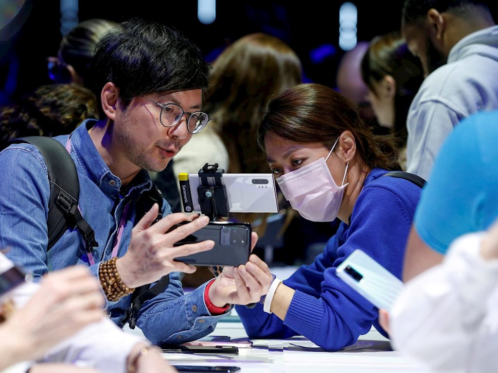 Khách tham dự sự kiện ra mắt Galaxy S20 của Samsung hôm 11/2 tại Mỹ. Ảnh: Reuters |