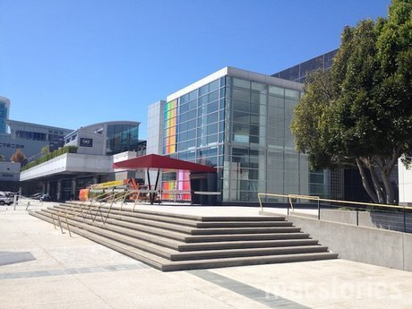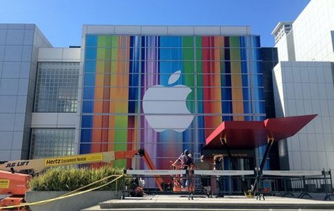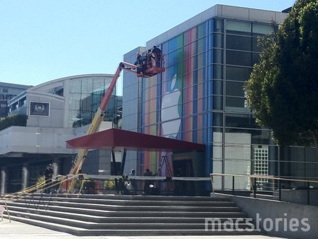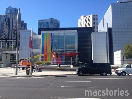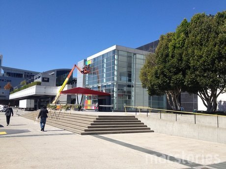 Các hình ảnh dưới đây từ MacStories cho thấy sự chuẩn bị của Apple tại Trung tâm nghệ thuật Yerba Buena rầm rộ như thế nào.