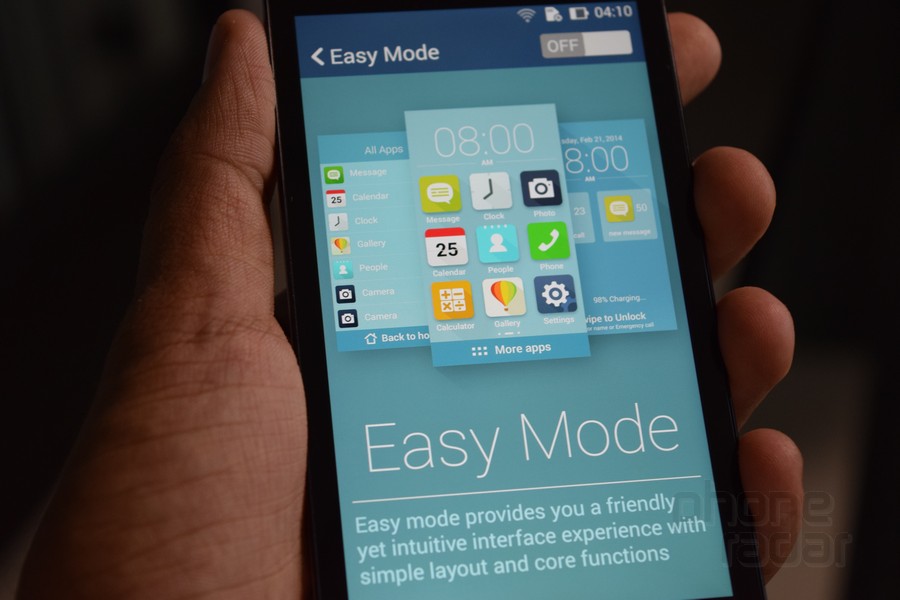 Nếu thấy giao diện Zen Fone 5 quá phức tạp, bạn có thể chuyển sang chế độ Easy Mode để chỉ hiển thị các ứng dụng, shortcut quan trọng, thông báo cơ bản, đồng hồ trên màn hình. Truy cập Settings > Devices > Easy Mode để kích hoạt.