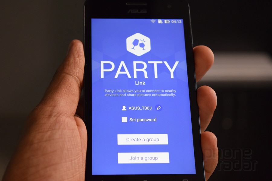 Party Link là ứng dụng đặc biệt của Asus cho ZenFone 5, cho phép người dùng chia sẻ ảnh trên điện thoại với người khác. Chủ nhân có thể tạo nhóm, mời người khác làm thành viên và cho họ mật khẩu để xem ảnh với điều kiện họ cũng dùng ứng dụng này.
