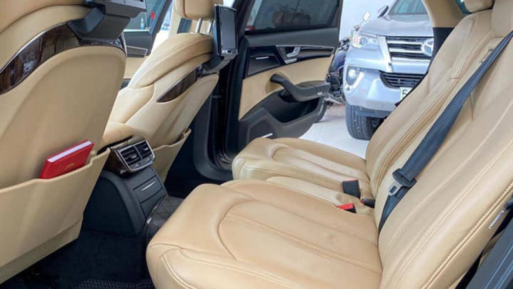 Hàng ghế sau của Audi A8L có 2 màn hình giải trí độc lập, bàn làm việc ốp gỗ và hệ thống điều khiển tiện nghi được tích hợp tại bệ tì tay trung tâm. Phiên bản 3.0L V6 cũng được trang bị một tủ lạnh nhỏ phía sau bệ tì tay để phục vụ cho nhu cầu sử dụng rượu của hành khách.