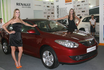 Renault thì thu hút khách tham quan với 1 dàn những người mẫu xinh đẹp đến từ châu Âu. Renault cũng chọn Auto Expo 2011 là nơi ra mắt xe mới Latitude, một mẫu sedan lớn, sang trọng với động cơ V6, nội thất tinh tế và những cách tân về công nghệ để đạt đẳng cấp cao. Ngoài ra Renault cũng trưng bày phiên bản Black Edition của mẫu sedan Fluence với bộ vành đúc 16 inch mầu đen và cửa sổ tối màu cùng hệ thống âm thanh của hãng Bose, động cơ 2.0 CVT tiết kiệm nhiên liệu, công suất mạnh.