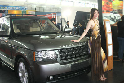 Bên cạnh các gian hàng Audi, Renault, còn có các gian hàng xe nhập khác như Land Rover cũng rất sôi động với các mẫu xe mới Land Range Rover Sport cùng dàn mẫu chân dài gợi cảm.