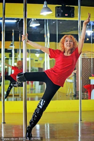 Nếu ai cho rằng múa cột chỉ dành cho những cô gái trẻ và có thân hình nóng bỏng thì họ sẽ phải nghĩ lại khi nhìn bà Sun Fengqin xoay mình uyển chuyển bên những chiếc cột.