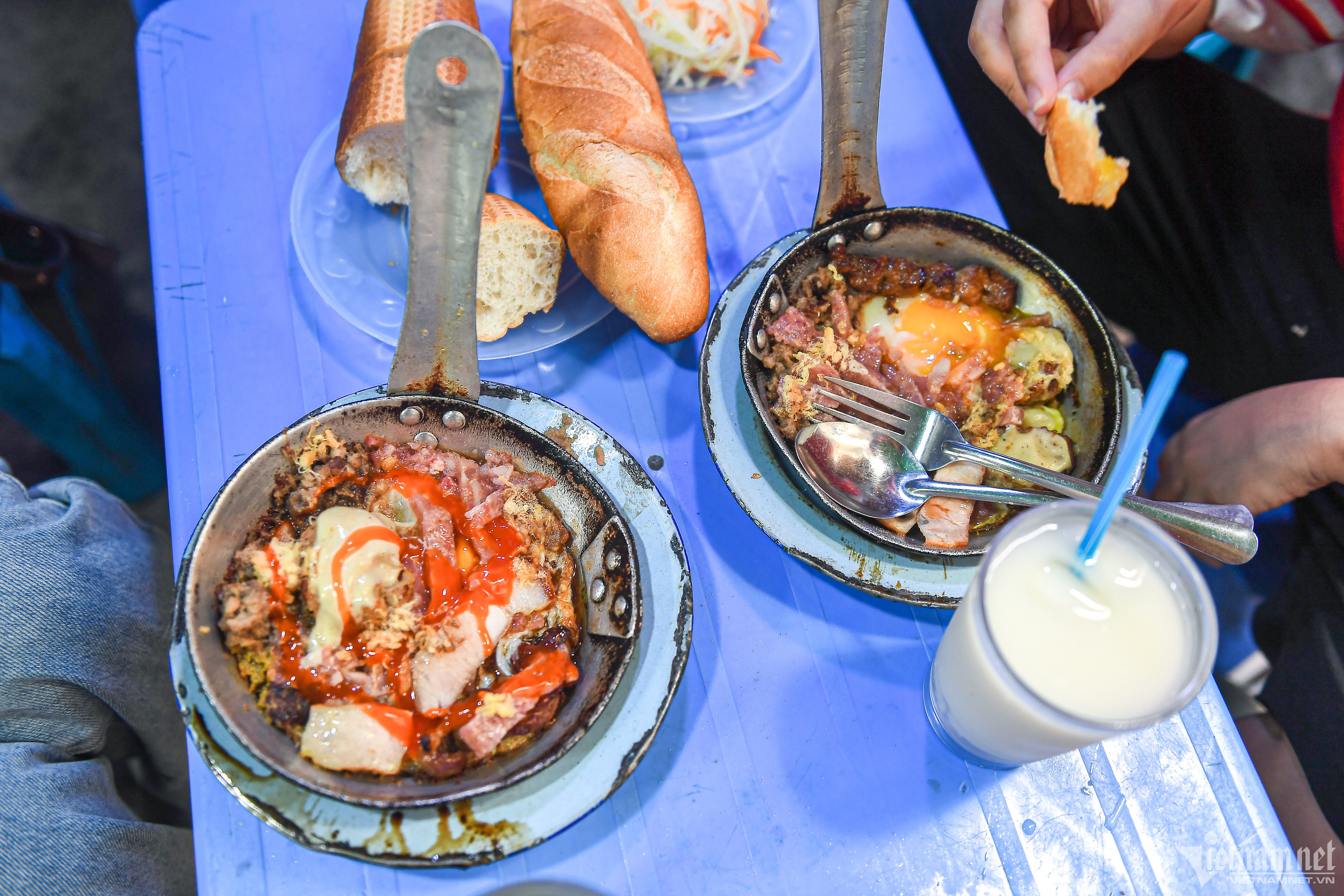 Quán bánh mì chảo của bà Hồng là địa chỉ yêu thích của nhiều thực khách Hà Nội. Hiện này, bà vẫn giữ những chiếc chảo Liên Xô từ thời bao cấp để phục vụ khách quen hoặc những người thích tìm kiếm hương vị, kí ức xưa cũ.