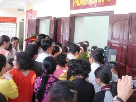 Người dân rất quan tâm đến vụ án nên tìm mọi cách để nghe diễn biến phiên tòa.