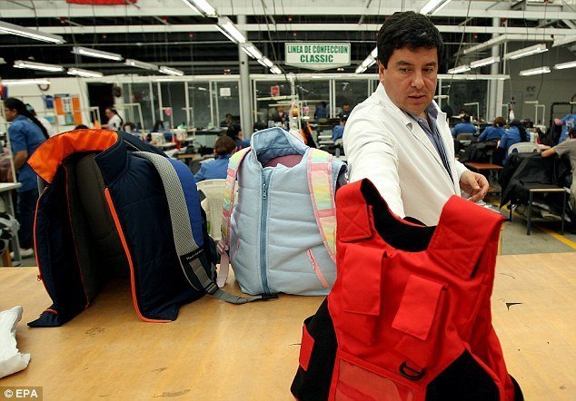 Doanh nhân người Colombia, Miguel Caballero cho biết công ty của ông sẽ sản xuất quần áo và ba lô chống đạn dành cho trẻ em và đưa ra thị trường trong hai tuần tới để đáp ứng nhu cầu đang gia tăng, sau vụ xả súng kinh hoàng tại trường tiểu học Sandy Hook ở Connecticut (Mỹ) vào ngày 14/12, khiến 21 học sinh thiệt mạng.