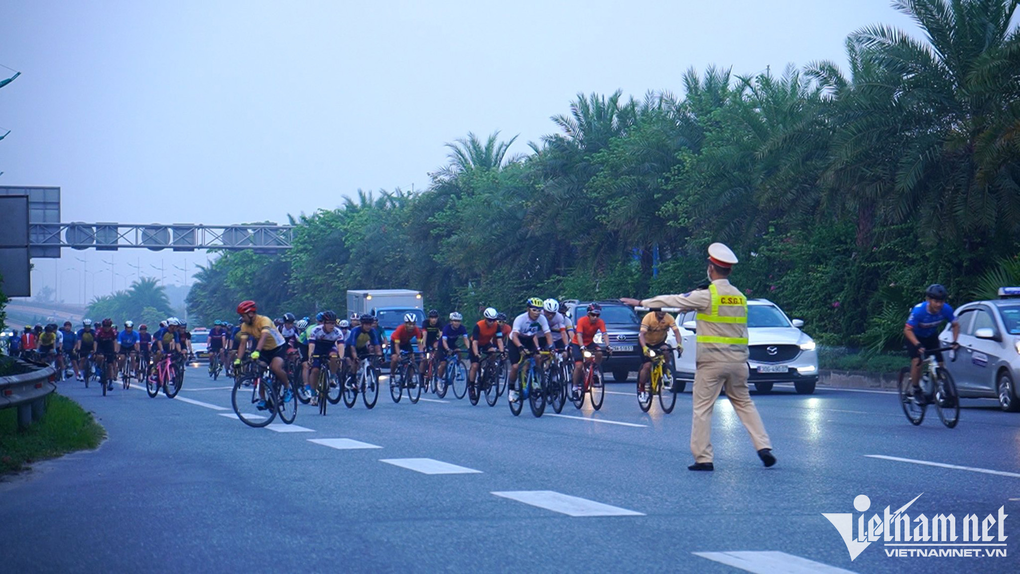 Chỉ huy Đội CSGT số 15 cho hay, tình trạng người dân tụ tập, đạp xe vào làn ô tô trên đường Võ Nguyên Giáp thường xuyên xảy ra vào thời điểm sáng sớm. Tại các buổi cuối tuần, tình trạng này có gia tăng.