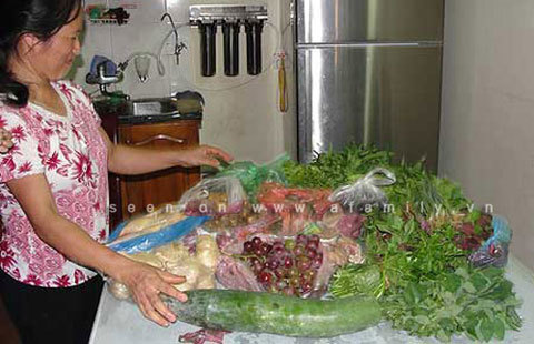 Bà Hải cũng tiết lộ: những ngày này, mua hàng ngoài chợ cóc khá đắt, nhưng mua ở siêu thị thì giá cả ổn định hơn nên sau khi bà sẽ mua hàng ở chợ rồi lại ra siêu thị mua thêm. Chỉ tính riêng hôm nay, số tiền đi chợ cho gia đình bà đã tăng 4 lần so với ngày thường. Tuy nhiên, nếu không “gom” thực phẩm để trong nhà, thì bà cũng như nhiều người nội trợ khác cảm thấy không yên tâm khi cơn bão sắp tới đổ bộ vào miền Bắc.