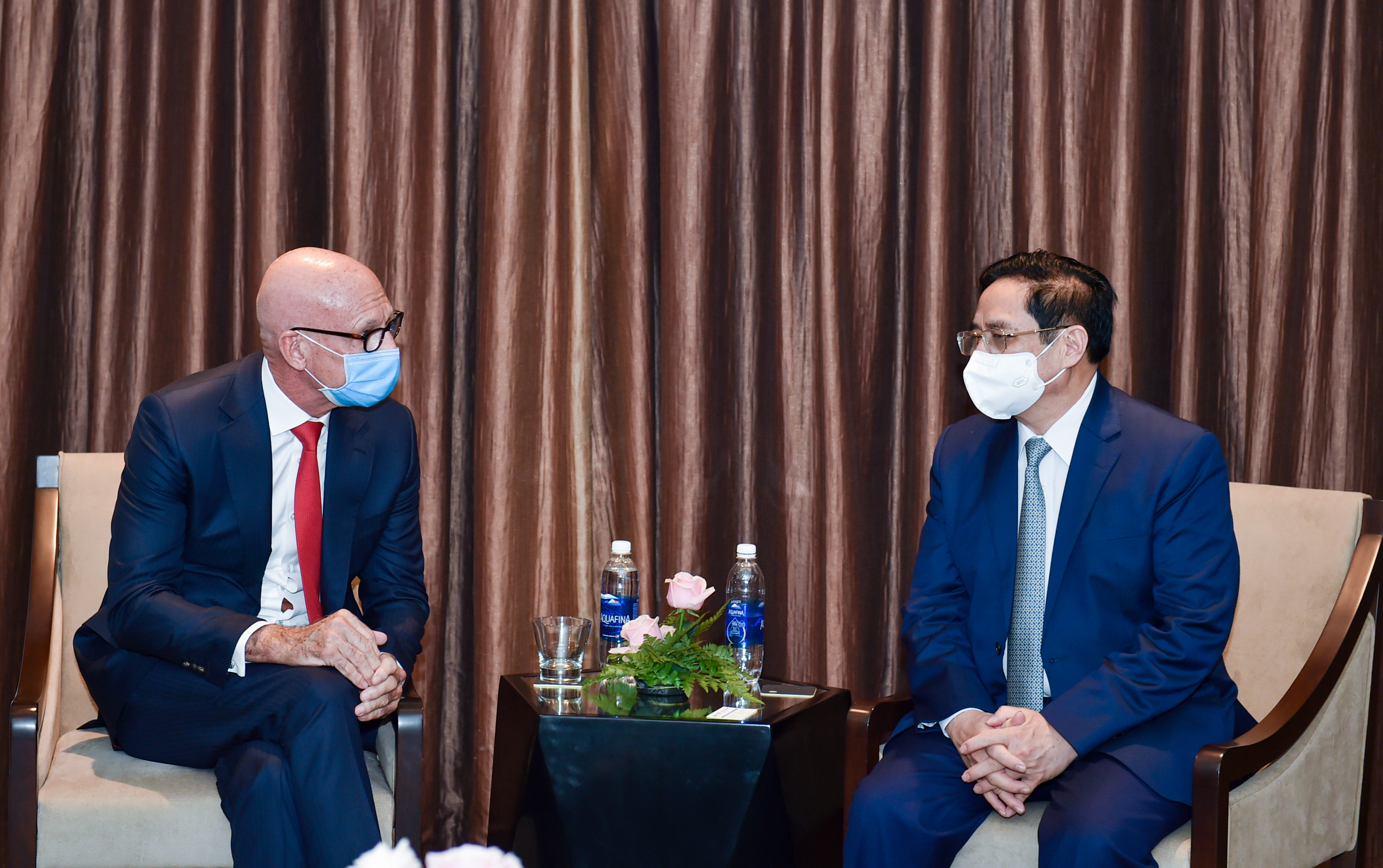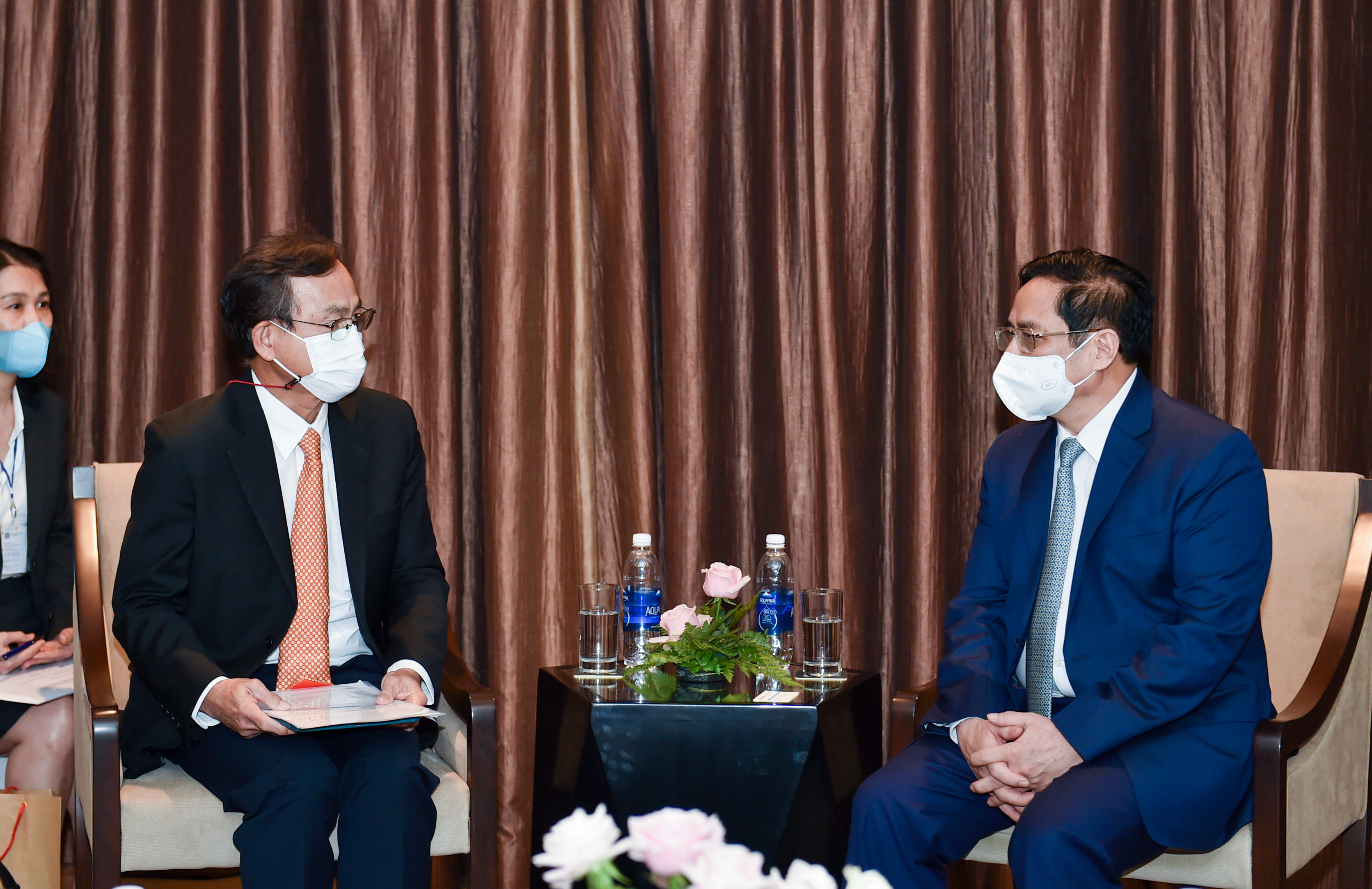 Tại các buổi tiếp, Thủ tướng cũng yêu cầu các bộ, ngành và địa phương tạo điều kiện thuận lợi cho việc triển khai các dự án; cho biết Việt Nam đang thúc đẩy các các dự án hạ tầng chiến lược tại Bà Rịa-Vũng Tàu và trong khu vực; đề nghị các nhà đầu tư thực hiện tốt các quy định, đẩy nhanh tiến độ đầu tư và tiếp tục tích cực hỗ trợ phía Việt Nam trong đẩy mạnh chiến dịch tiêm vaccine phòng COVID-19 cho người dân…