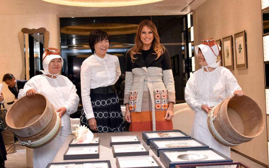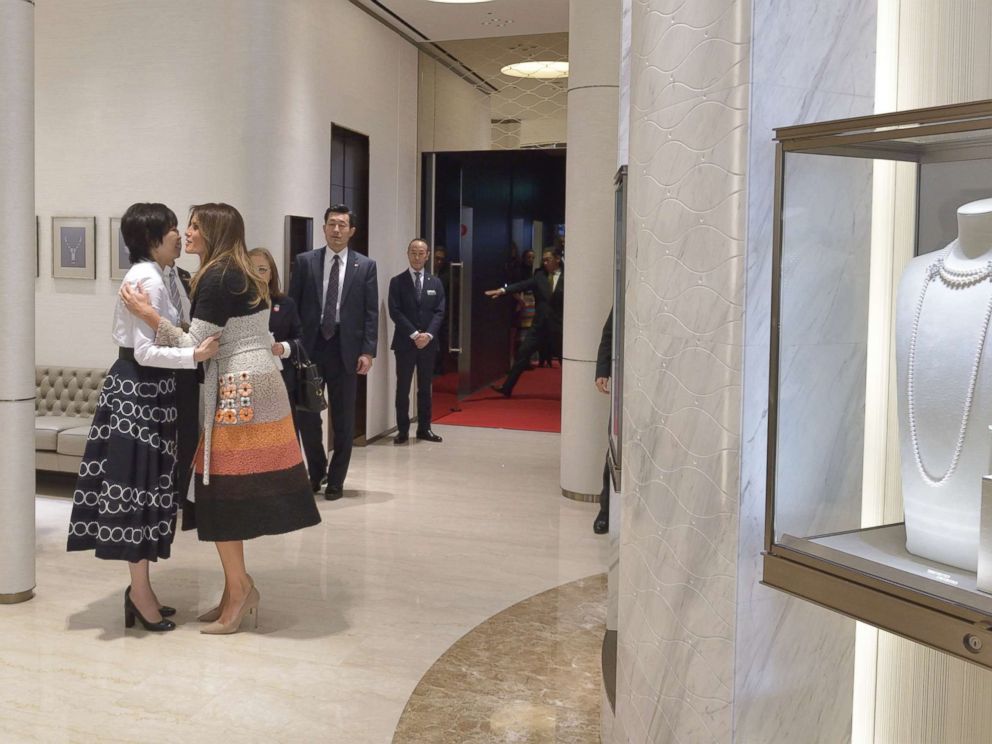 Bà Akie Abe đã dẫn bà Melania Trump tới thăm một cửa hàng của hãng phụ kiện thời trang Mikimoto, nhà cung cấp trang sức chính thức cho Hoàng gia Nhật, tại khu phố mua sắm Ginza ở thủ đô Tokyo, Japan Times đưa tin.