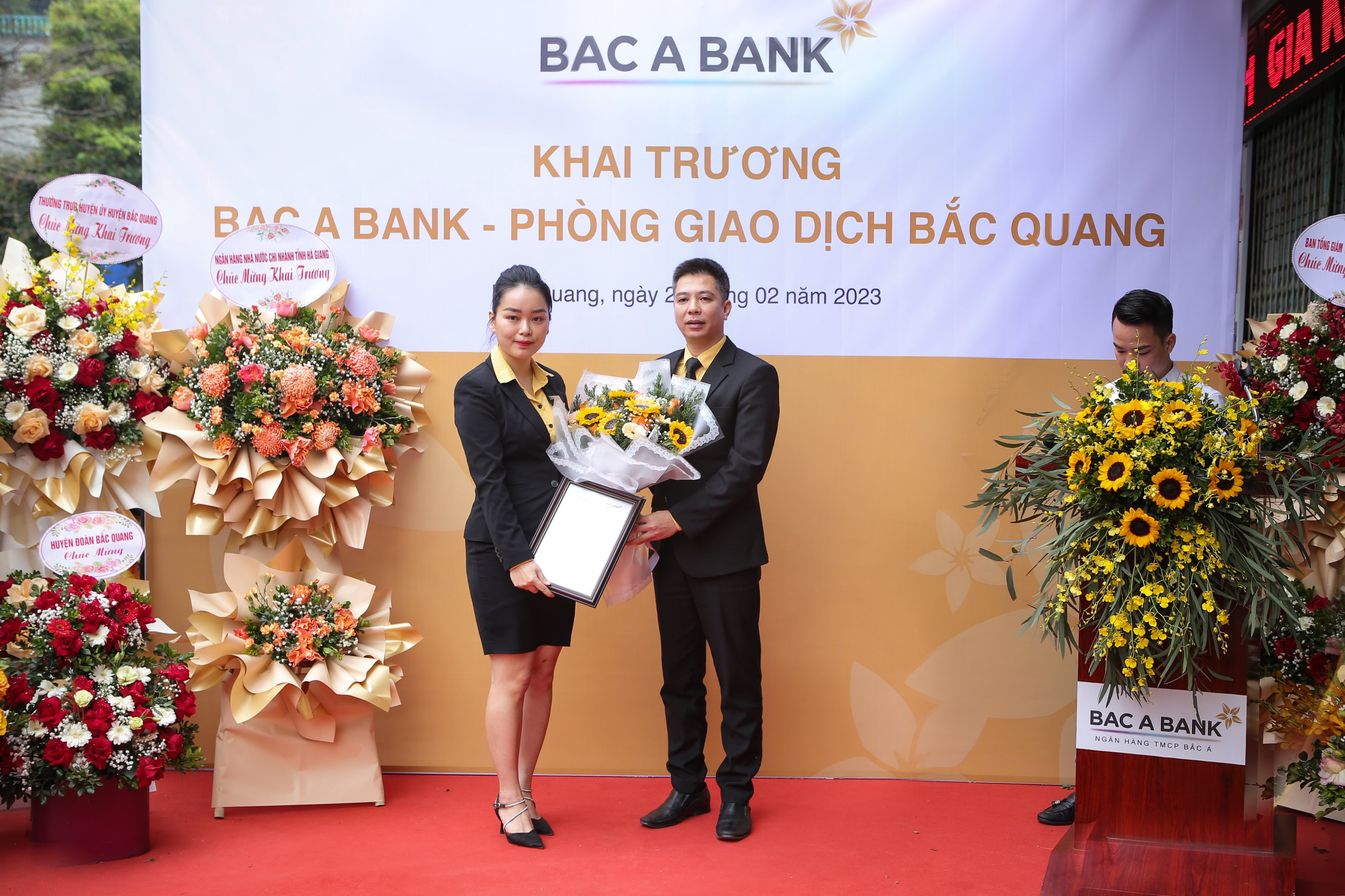 Bà Nguyễn Thị Nguyệt - Phó Giám đốc phụ trách Phòng giao dịch Bắc Quang - Chi nhánh Hà Giang chia sẻ, “Xuất phát từ thực tế hoạt động cũng như tiềm năng thị trường, được sự chấp thuận của Ngân hàng Nhà nước, ngày hôm nay Phòng giao dịch Bắc Quang chính thức đi vào hoạt động, thể hiện quyết tâm của Bac A Bank Chi nhánh Hà Giang trong kiện toàn, mở rộng mạng lưới và phát triển năng lực. Bằng sự nhiệt huyết và quyết tâm, chúng tôi cam kết sẽ nỗ lực hết sức để mở rộng thị trường, tiếp cận hiệu quả khách hàng, từng bước gây dựng uy tín và vị thế thương hiệu Bac A Bank trên địa bàn. Tập thể Phòng giao dịch Bắc Quang đồng lòng hướng tới mục tiêu: đạt và vượt các chỉ tiêu kinh doanh được giao, cùng Chi nhánh Hà Giang trở thành điểm sáng trên toàn hệ thống Bac A Bank”.