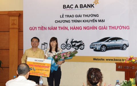 Chương trình khuyến mại “Gửi tiền năm Thìn, hàng nghìn giải thưởng” của Bac A Bank được triển khai từ ngày 17/1 đến hết ngày 15/4/2012 trên phạm vi toàn quốc dưới hình thức quay số xác định trúng thưởng.