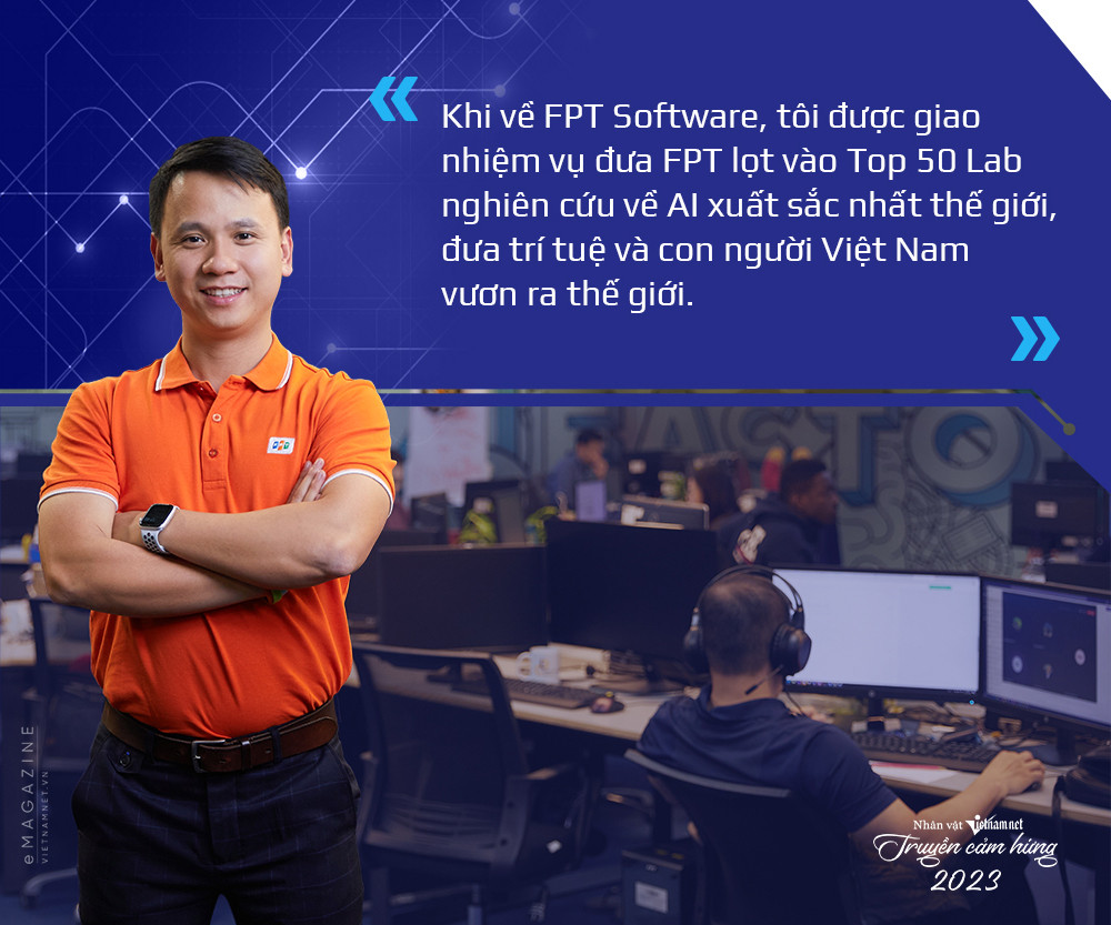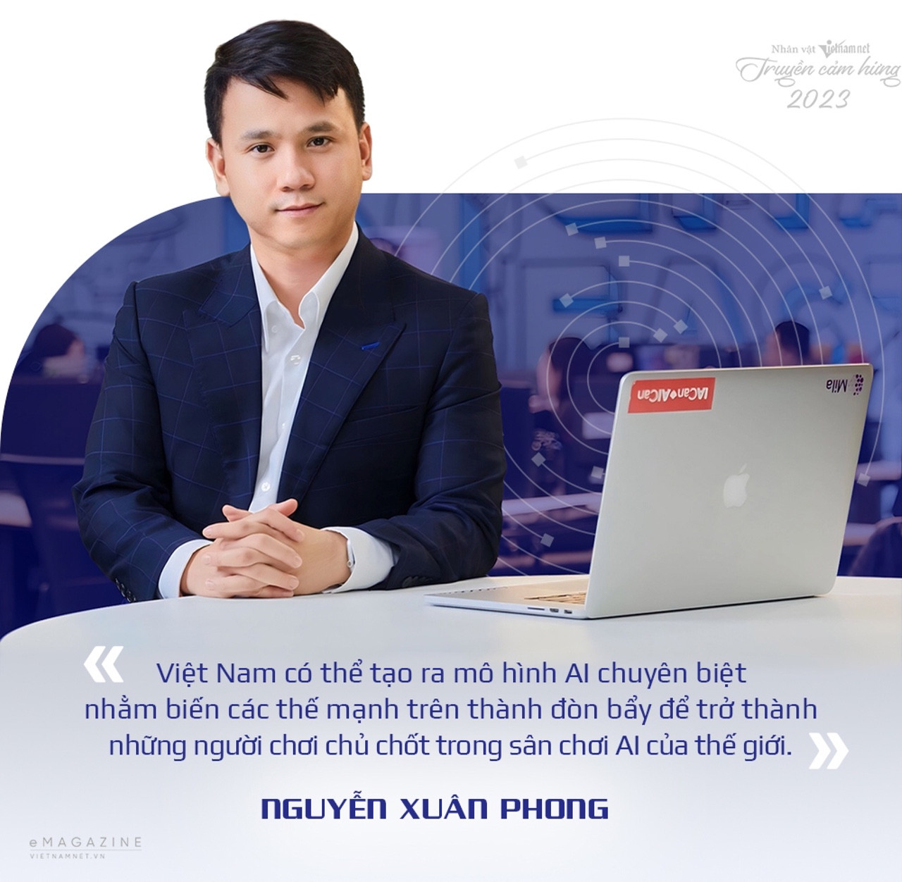“Khi về FPT Software, tôi được giao nhiệm vụ đưa Công ty lọt Top 50 Lab nghiên cứu về AI xuất sắc nhất thế giới, góp phần đưa trí tuệ và con người Việt Nam vươn ra thế giới. Đây là nhiệm vụ rất thử thách nhưng cũng vô cùng thú vị, nhờ vậy mà tôi có cơ hội làm việc với rất nhiều nhà nghiên cứu AI Việt trên thế giới cũng như các nhân tài trẻ trong nước. Có thể thấy, gần đây, các nhà khoa học Việt Nam đang và dần được công nhận nhiều hơn trên các diễn đàn quốc tế về AI. Điển hình như việc tôi đã mời được các giáo sư, chuyên gia AI đầu ngành thế giới hợp tác với FPT về AI như giáo sư Yoshua Bengio và viện nghiên cứu Mila đang đồng hành với FPT trong mảng nghiên cứu AI. Tiến sĩ Andrew Ng và Landing AI đang đồng hành với FPT trong đào tạo và phát triển sản phẩm. Với sự hỗ trợ từ những chuyên gia hàng đầu thế giới, tôi tin rằng từ đây những nhân tài Việt Nam sẽ có chỗ đứng trong bản đồ AI thế giới”, Nguyễn Xuân Phong chia sẻ.