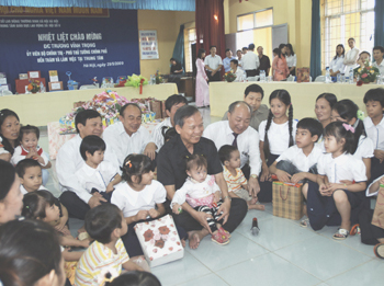 Phó Thủ tướng Trương Vĩnh Trọng thăm các cháu nhỏ không may mang trong mình vi rút HIV tại Trung tâm Giáo dục lao động số II Hà Nội ngày 1/6/2009. Ảnh: VGP/Nguyễn Hoàng |