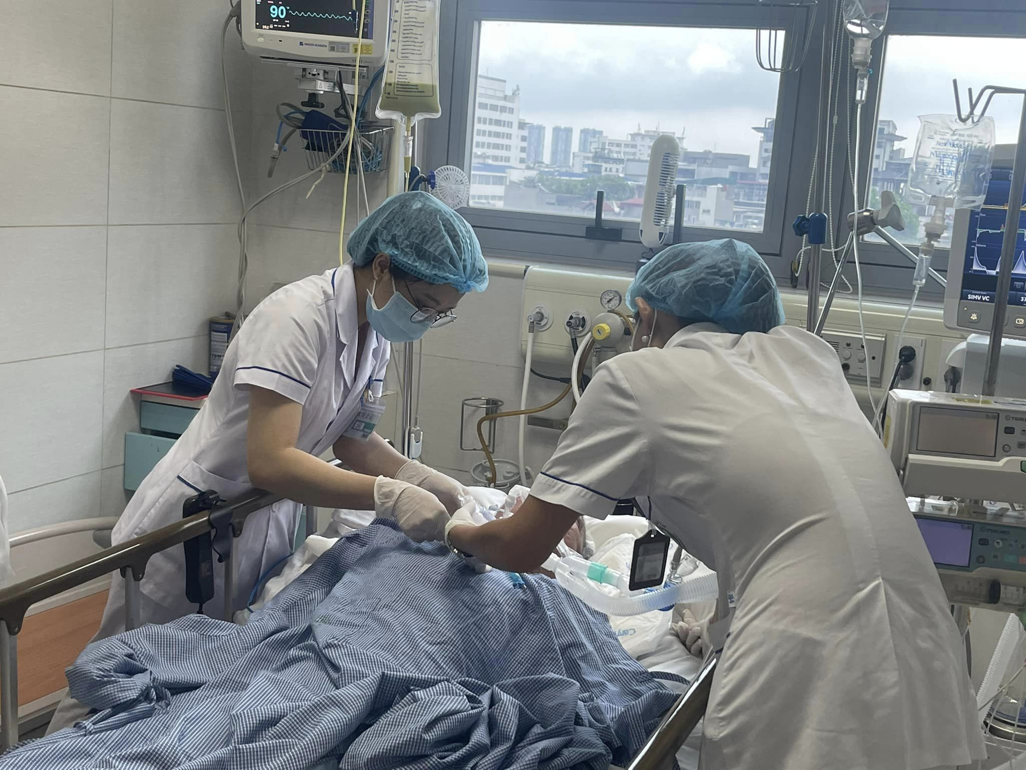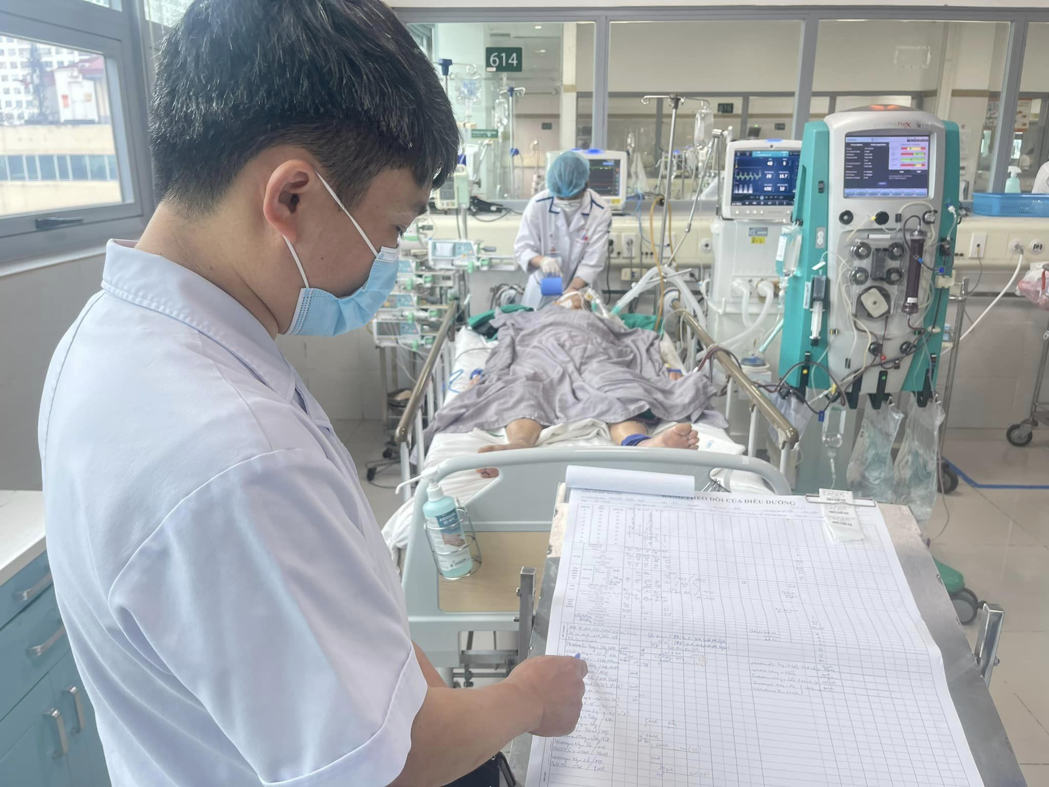 Hình ảnh chăm sóc một bệnh nhân cần hồi sức tích cực tại Bệnh viện Bạch Mai. Ảnh: Phương Thúy.