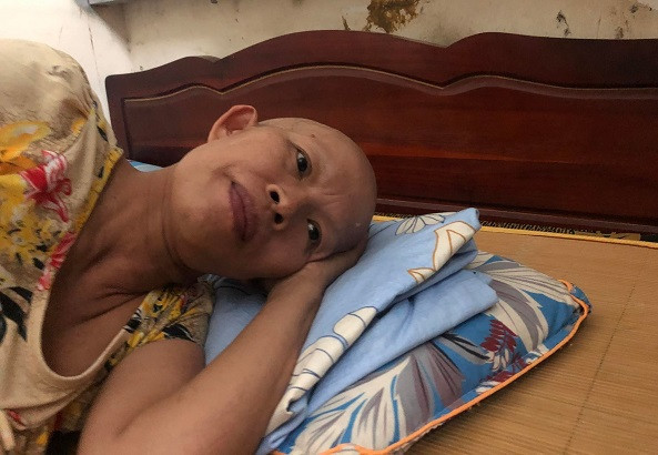 Những đợt truyền hóa chất liên miên khiến cơ thể người phụ nữ yếu ớt càng thêm suy nhược. Thế nhưng chị vẫn đi một mình gắng gượng điều trị, bởi các con ở nhà cần có bố chăm nom.