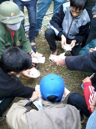 Ngay trong khu vực trung tâm khuôn viên khu lăng mộ vua Mai, có không dưới 5 sới bạc xôm tụ với cả trăm người tham gia, chủ yếu là thanh thiếu niên. Mỗi lượt đặt cửa lên tới 50.000 – 100.000 đồng.