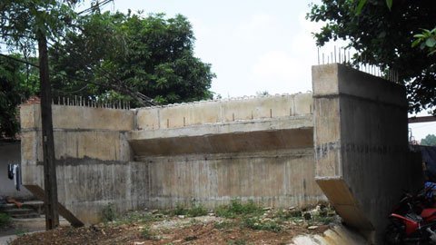 Trụ cầu xây dang dở như những lô cốt lớn rồi bỏ đấy |