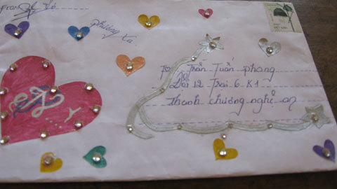 Bao thư đặc biệt của một nữ phạm nhân phải lĩnh án chung thân. Phong thư được làm từ giấy A4 dán vuông vức, trên nền phong thư thì dán những trái tim đỏ, hồng, xanh ngang dọc, ở giữa những trái tim đặt những viên đá bằng nhựa màu bạc và ở phần người gửi ghi nắn nót: Vợ phương xa. Người nhận ghi: Trần Tuấn Phong (đội 12, trại, 6 K1 Thanh Phong, Nghệ An).