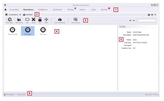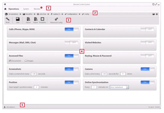 Hacking Team được hướng dẫn sử dụng từng bước cho kỹ thuật viên, quản lý viên, và các nhà phân tích vào thnasg 9/2013 về cách lây nhiễm phần mềm vào thiết bị và thiết lập gián điệp. Phần mềm này có thể được cài đặt theo kiểu vật lý, thông qua một USB thông qua việc truy cập trực tiếp vào máy tính (ví dụ ở đồn cảnh sát hoặc trạm tìm kiếm sân bay).