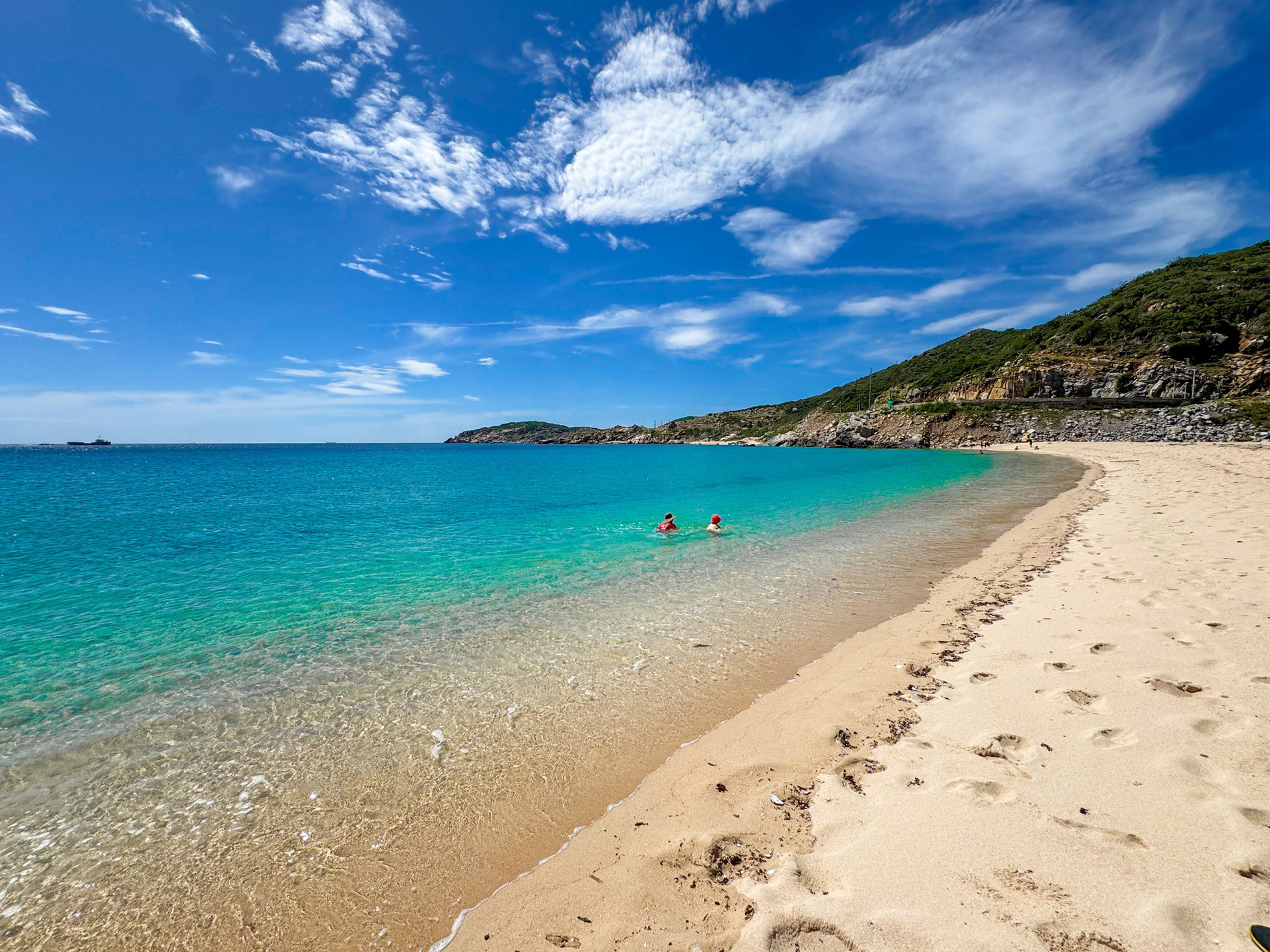 “Đây là bãi tự nhiên và chưa khai thác nên vẫn giữ nguyên được vẻ đẹp hoang sơ, nước biển xanh trong và bãi cát trải dài trắng mịn”, anh Dũng chia sẻ.