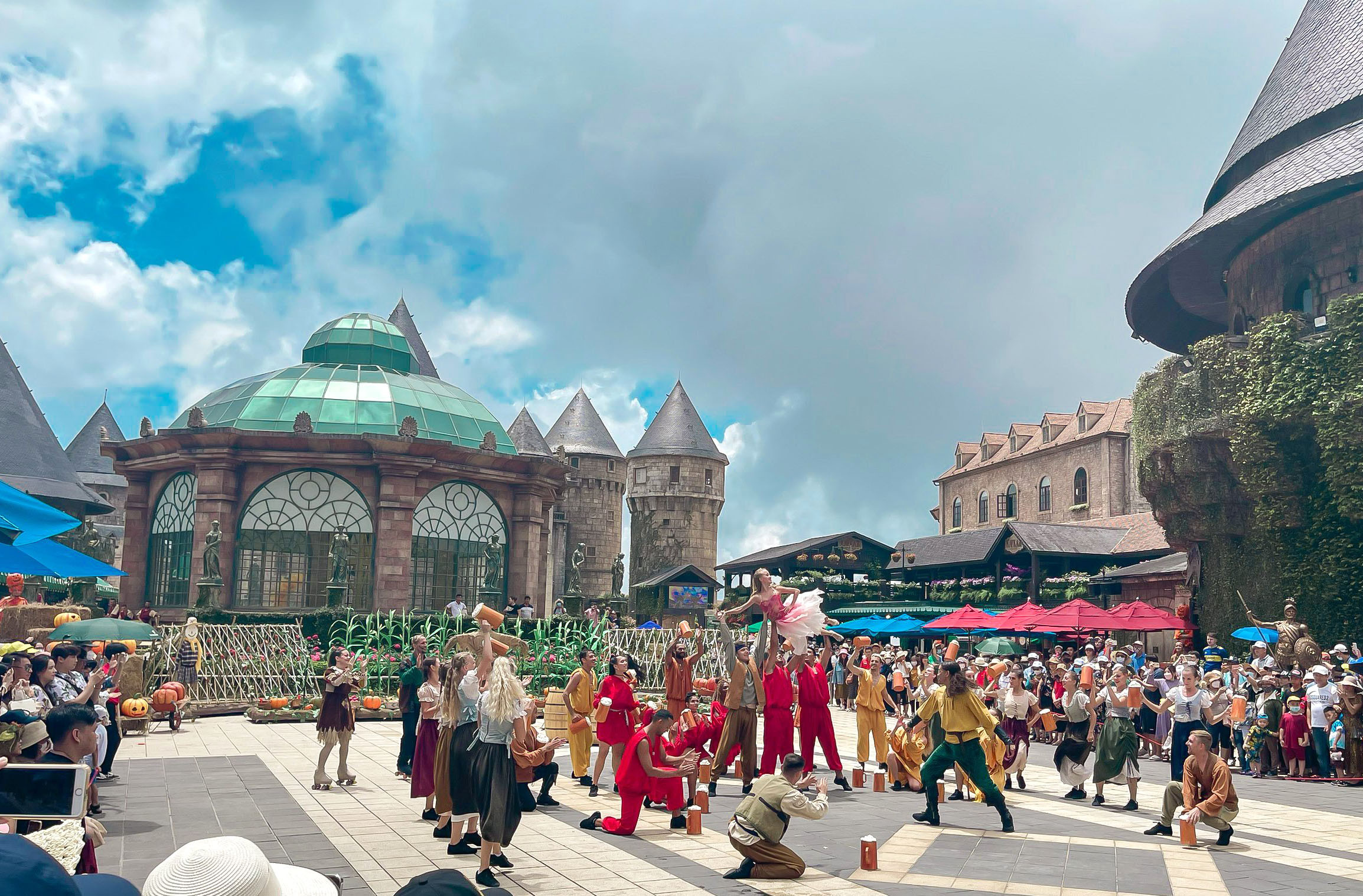Ngày 2/9, nhiều địa điểm, khu vui chơi ở Đà Nẵng như Bà Nà Hills, Núi Thần Tài, Chùa Linh Ứng... đông kín du khách đến tham quan Tại khu du lịch Bà Nà Hills, lượng khách tăng khoảng 50-60% so với ngày thườngRất đông du khách chen chân lên Cầu Vàng để tham quan, chụp ảnhTại khu vực quảng trường Beer Plaza khu du lịch Bà Nà Hills thu hút đông đảo du khách với nhiều tiết mục hoạt náo, chương trình biểu diễn trống malambo...Khu du lịch công viên suối khoáng nóng núi Thần Tài đón khá đông du khách trong những ngày đầu nghỉ lễ 2/9. Ảnh: X.H