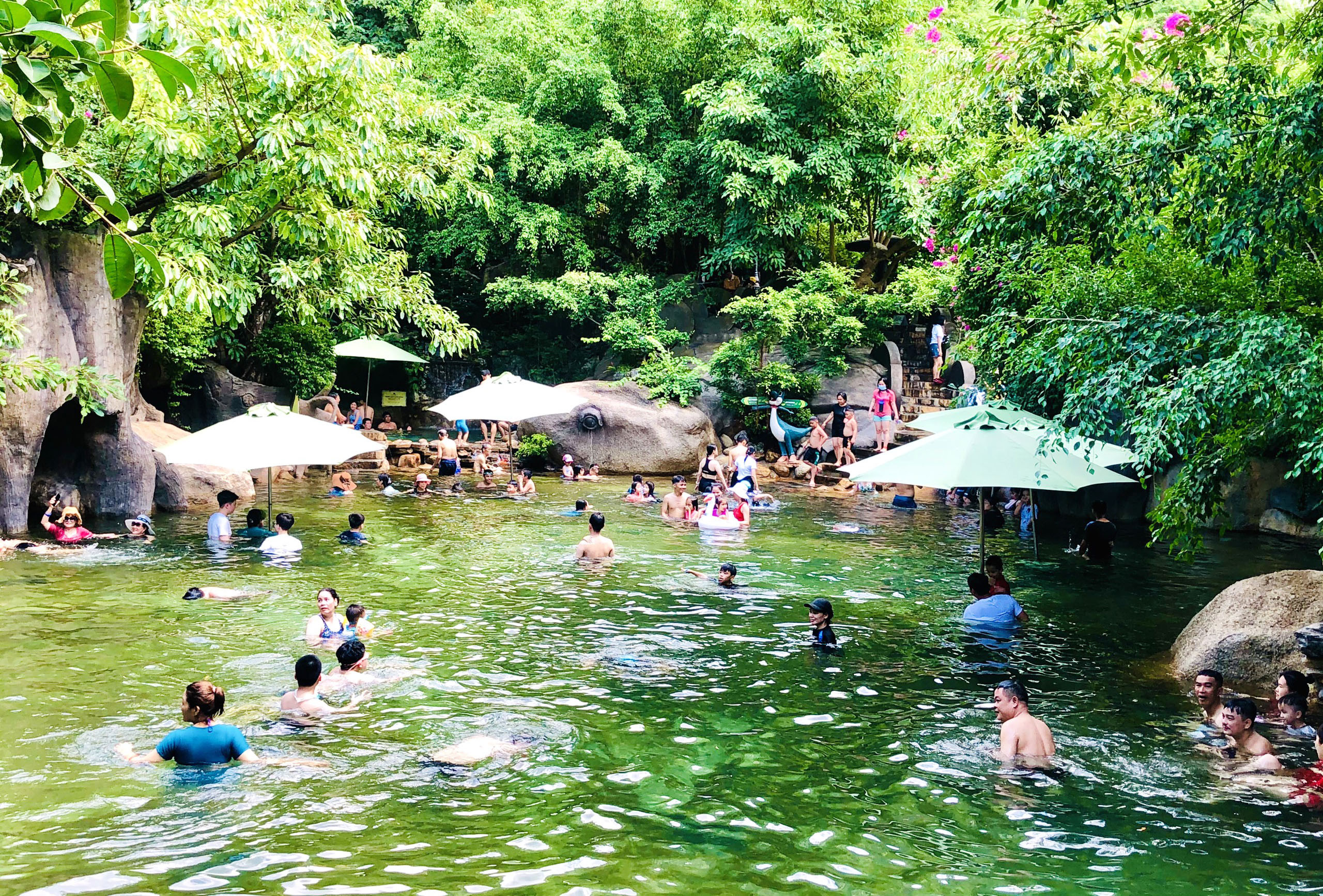 Bà Lê Thị Bích Hương, đại diện khu du lịch công viên suối khoáng nóng núi Thần Tài cho biết, trong 4 ngày lễ khu du lịch dự kiến sẽ đón hơn 25.000 khách. Ngoài ra, hệ thống khách sạn Ebisu tại khu du lịch cũng đã kín phòng. Ảnh: X.H