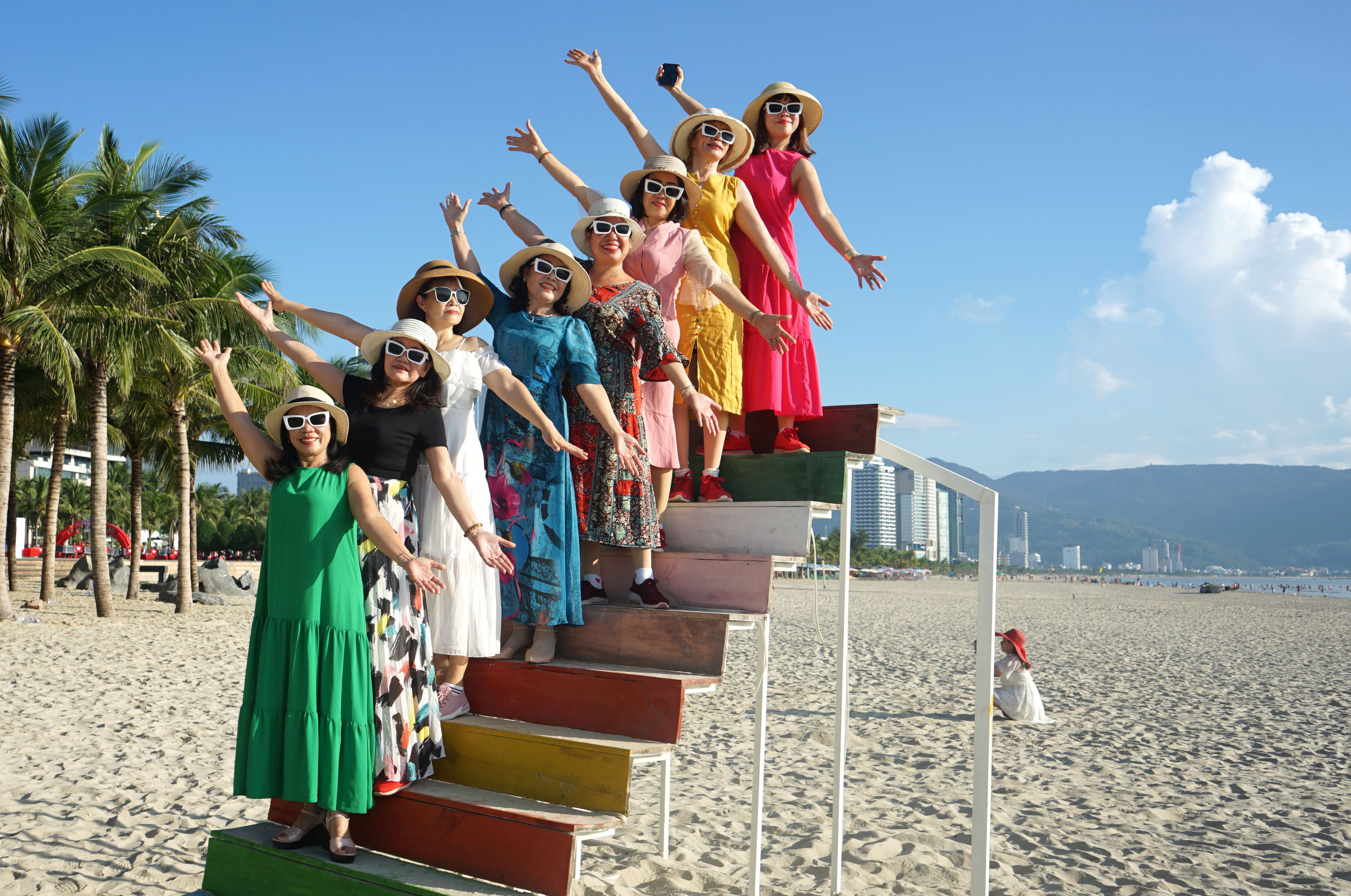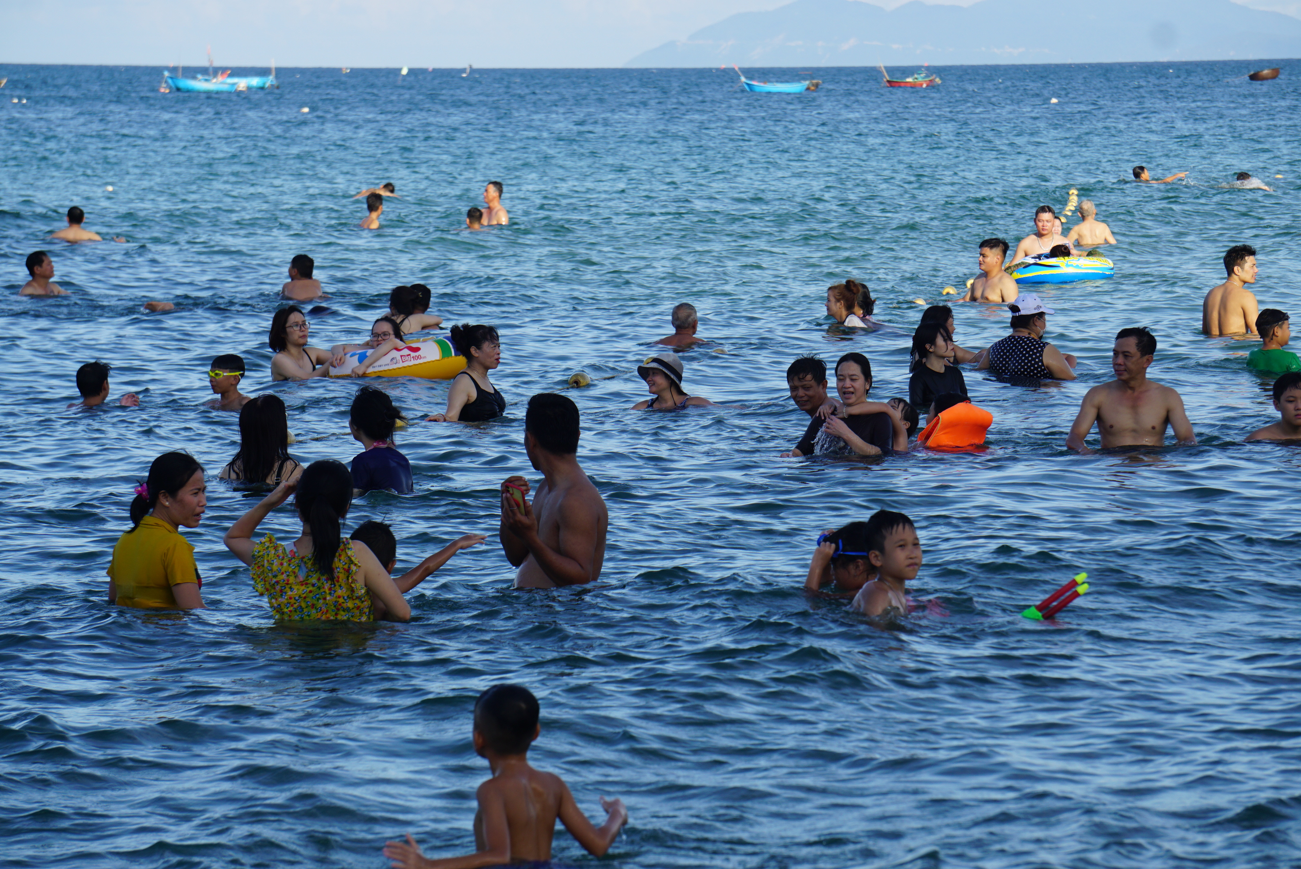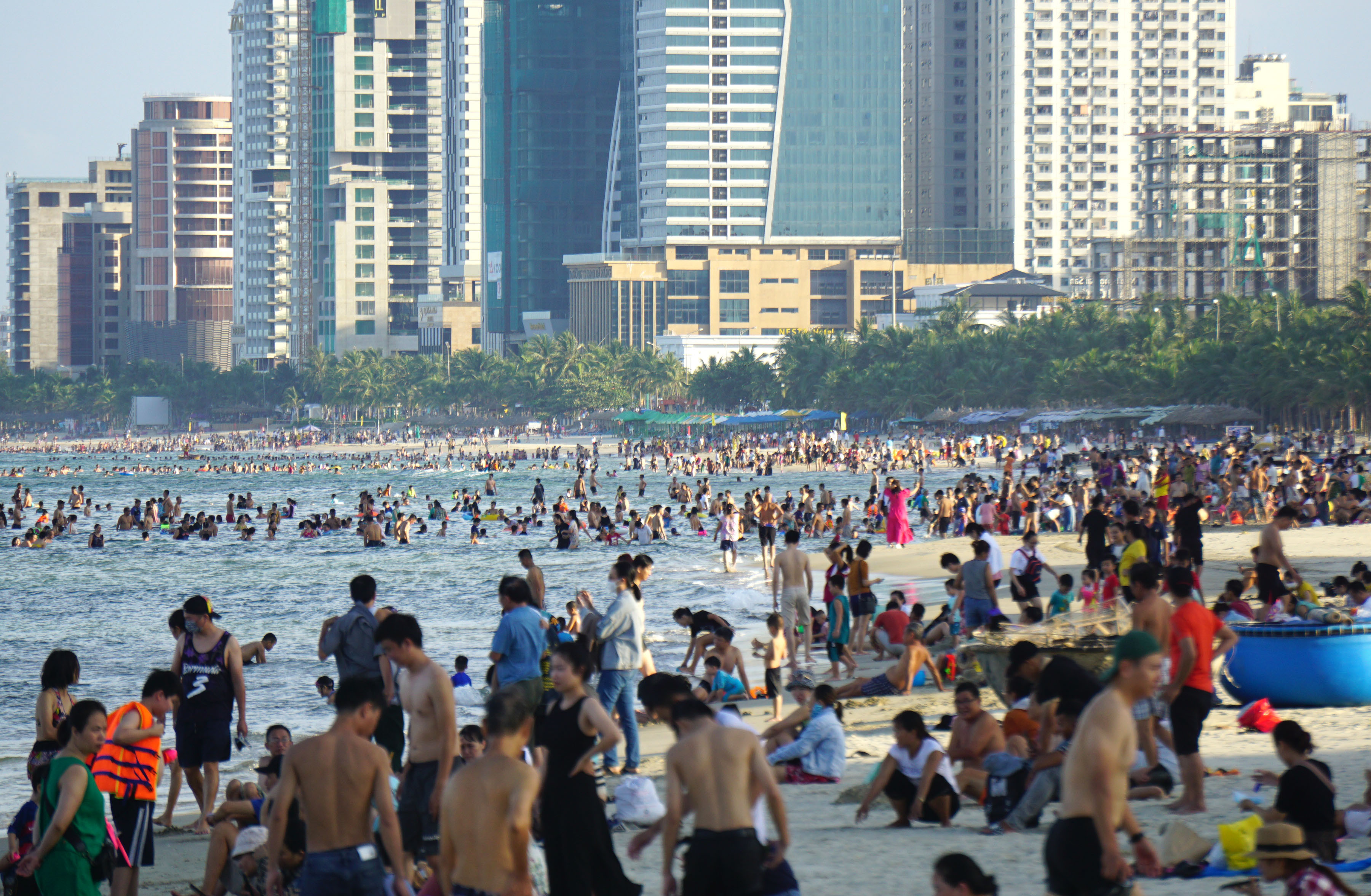 Cùng với các khu du lịch, tại các bãi biển Phạm Văn Đồng, Mỹ Khê... chật kín người dân và du khách tắm biển, hóng mátTừ 16h30, rất đông người dân đổ ra biển tắmBà Ivanka (du khách Anh) cùng con gái vui đùa trên bãi biển Phạm Văn Đồng chia sẻ: "Chúng tôi di chuyển từ TP.HCM đến Đà Nẵng tham quan. Thành phố này có bãi biển rất đẹp và sạch".Dọc bãi biển, Ban quản lý Bán đảo Sơn Trà bố trí sẵn các khu vực để du khách thoải mái chụp ảnh kỷ niệm