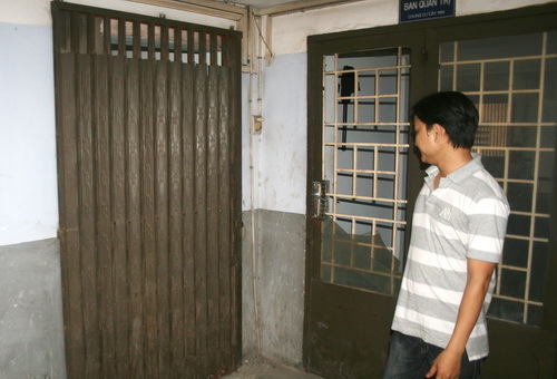 Chúng tôi được hướng dẫn đến vị trí lối thoát hiểm ở tầng lửng. Anh Tâm cho biết cửa này do bảo vệ chung cư phụ trách giữ chìa khóa. Ngay đêm xảy ra mất trộm cánh cửa này không khóa.
