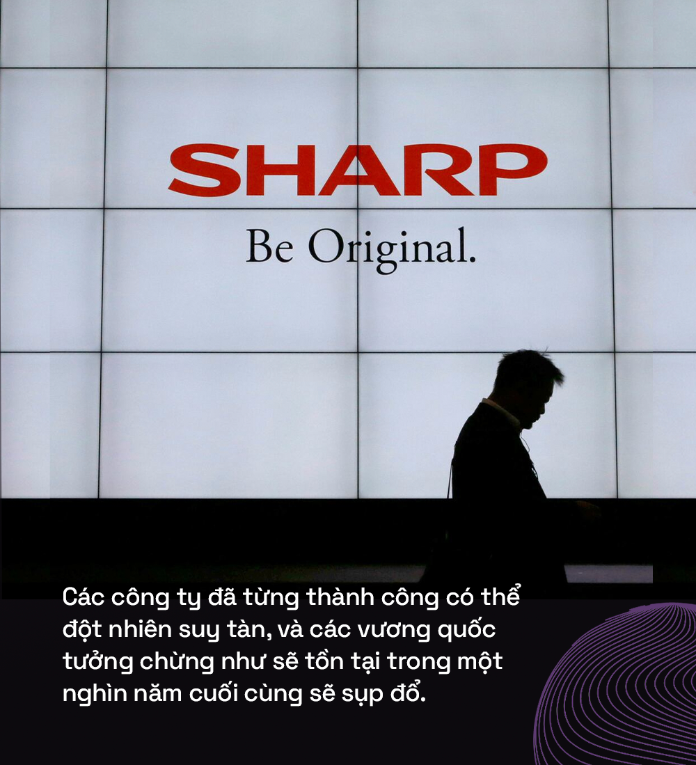 Những thất bại của Sharp trong suốt nhiều năm không xảy ra trong một sớm một chiều, cho thấy các vấn đề tổ chức và văn hóa sâu sắc hơn. Cảm giác tự hào và tự tin thái quá do những thành công trong quá khứ có thể đóng một vai trò trong việc này. Kết cục, Sharp phải bán mình cho Foxconn – một tập đoàn gia công điện tử lớn của Đài Loan (Trung Quốc) – vào năm 2016.