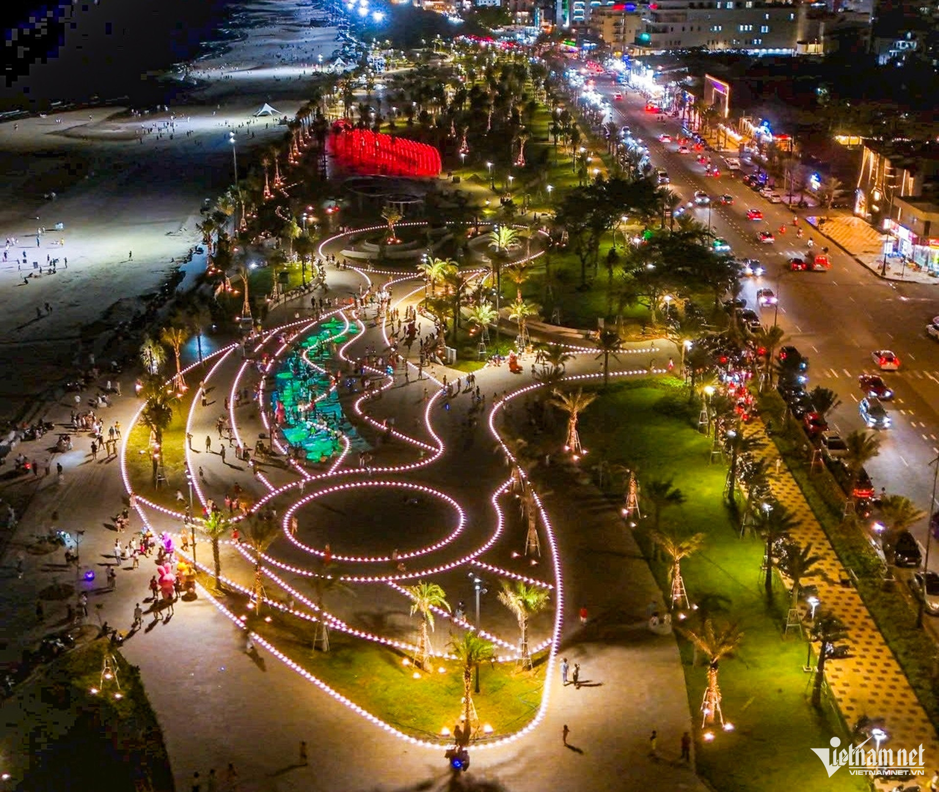 Nổi bật là khu trình diễn ánh sáng nghệ thuật 3D mapping, cầu đi bộ check-in – ngắm biển, cùng hệ thống chiếu sáng dọc bờ biển, camera an ninh, âm thanh công cộng và chống sét được đầu tư đồng bộ.