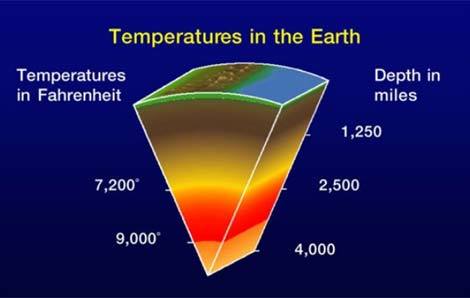 Cứ mỗi km tiến sâu vào lòng Trái đất, nhiệt độ sẽ tăng thêm 20 độ C. Gần khu vực trung tâm, nhiệt độ được cho là lên tới ít nhất 3.870 độ C.