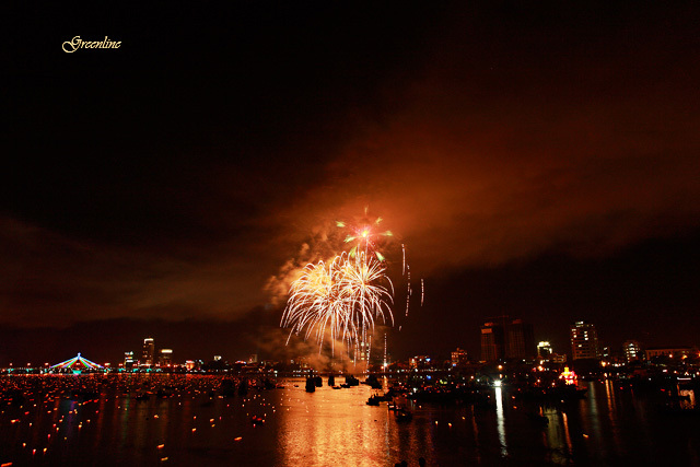 | Một cách xem pháo hoa khác ấn tượng hơn, đó chính là theo thuyền du lịch đi trên sông Hàn, chiêm ngưỡng pháo hoa và đón gió sông Hàn (Ảnh:phuot.com) |