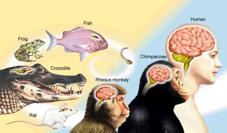 Một bộ não người trung bình cân nặng khoảng 1.361 gram. Não cá heo – một loài rất thông minh – cũng có khối lượng tương đương. Cá nhà táng – không thông minh bằng cá heo – có bộ não nặng đến 7.800 gram. Não của chó săn chỉ khoảng 72 gram Não chim sẻ chỉ có 1 gram.