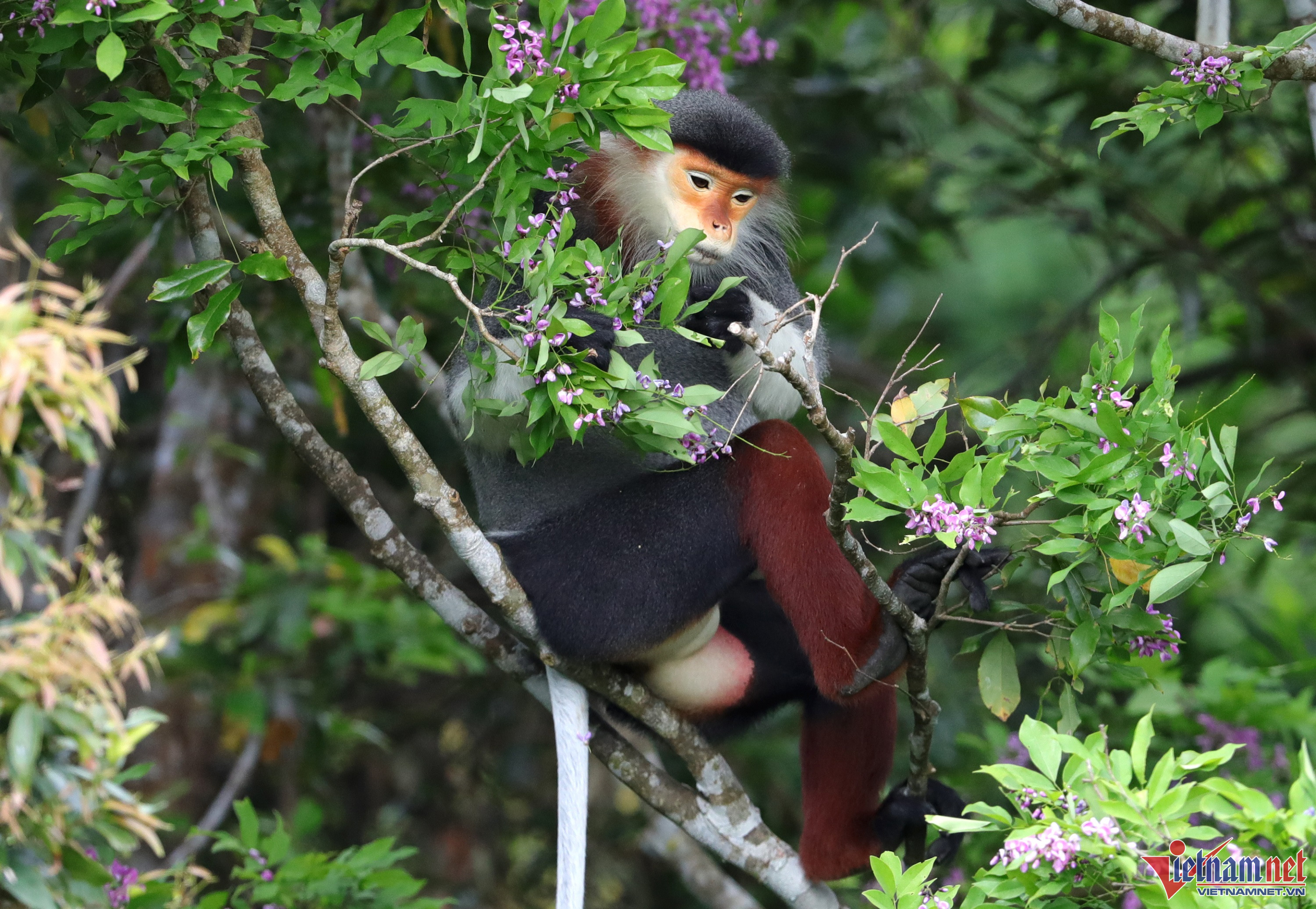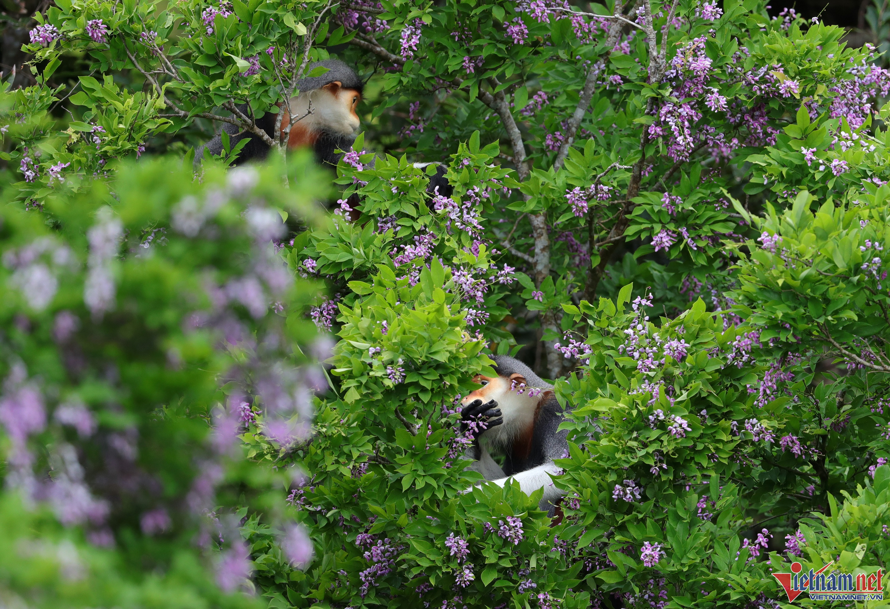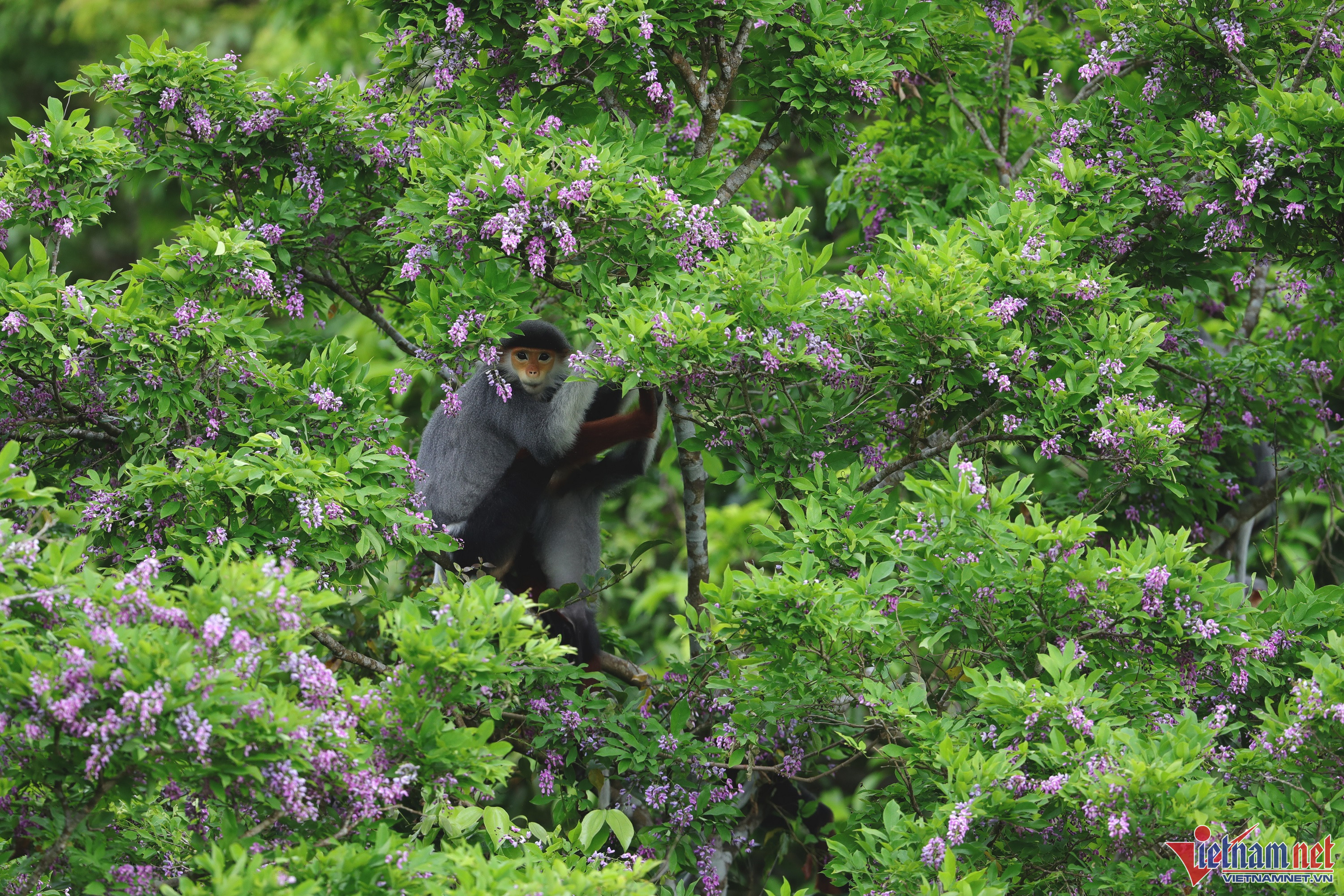 Những ngày này bán đảo Sơn Trà (Đà Nẵng) lại khoác "chiếc áo tím" của sắc hoa thàn mát. Vẻ đẹp quyến rũ của loài hoa này cùng với Vọoc chà vá chân nâu khiến bất cứ du khách nào đến thăm cũng không nỡ rời xa.