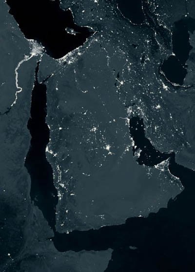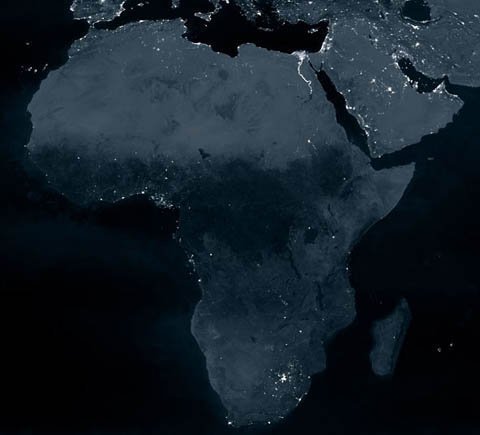 Những bản đồ - được tạo ra bằng việc sử dụng các dữ liệu thu thập từ vệ tinh - làm nổi bật sự tương phản giữa thế giới thứ nhất và thứ ba. Chỉ có một vệt ánh sáng duy nhất tại vùng đồng bằng châu thổ sông Nile của Ai Cập xuyên qua bóng đêm dày đặc ở Bắc Phi.