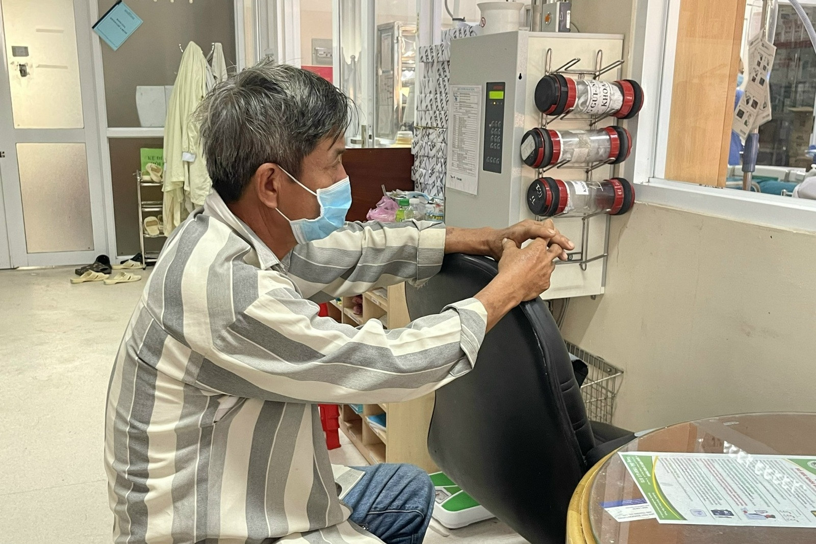 Ông Lý Chấn Gia (chồng bà Nhi) phải chạy xe ôm 15 tiếng mỗi ngày, từ sáng tới tối mịt, vừa tranh thủ bán thêm vé số nhưng vẫn không lo xuể chi phí.