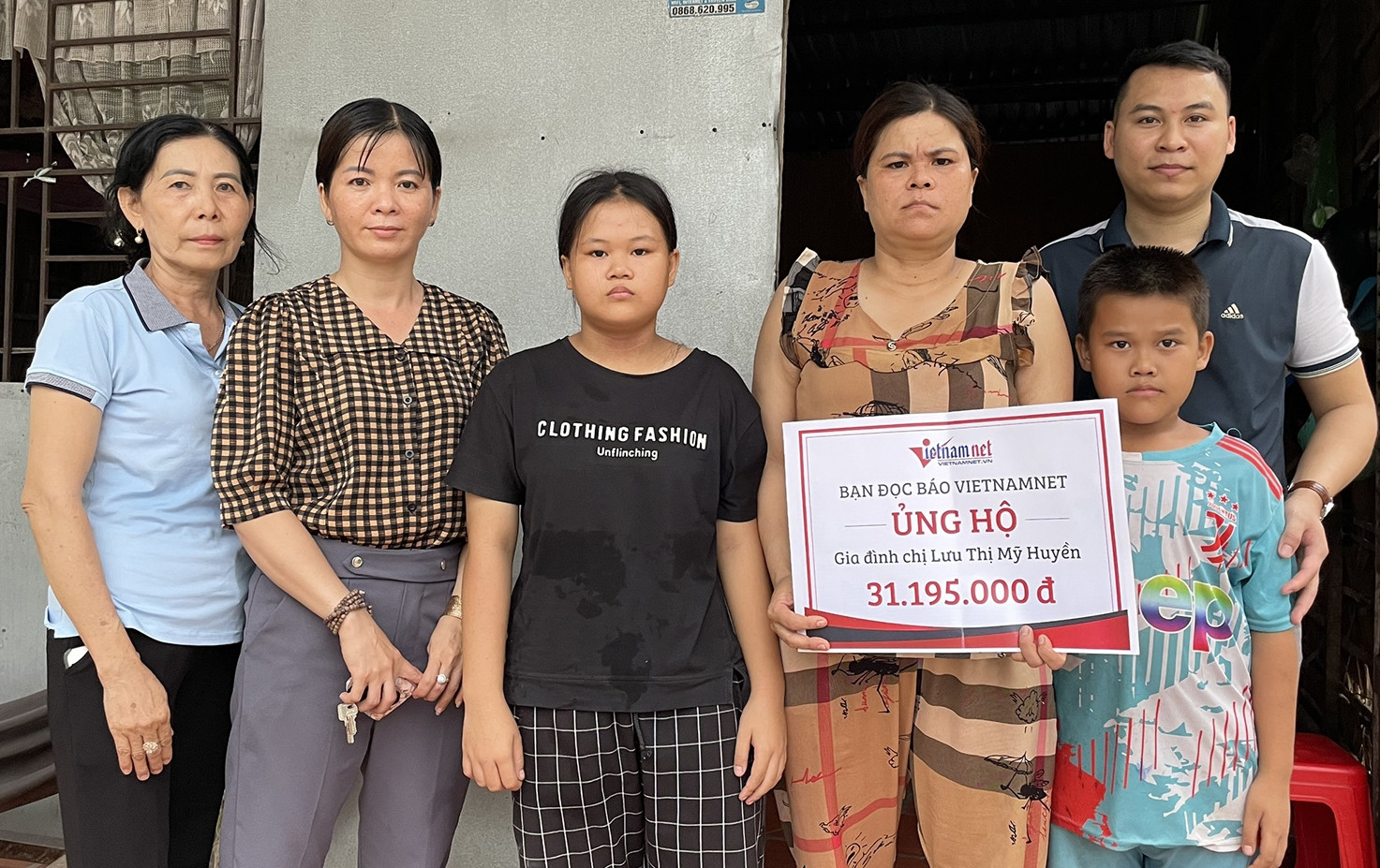 Vừa qua, đại diện báo VietNamNet đã trao 20.500.000 đồng do bạn đọc ủng hộ đến chị Lưu Thị Mỹ Huyền (37 tuổi, trú xã Đông Bình, huyện Thới Lai, Cần Thơ). Chị Huyền là nhân vật trong bài viết: “Hoàn cảnh bi đát của gia đình nghèo sống trong căn nhà tranh rách nát”. Như vậy, tổng số tiền gia đình chị Huyền được ủng hộ là hơn 50 triệu đồng.