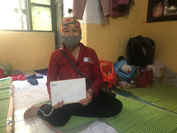 Chồng mất cách đây 15 năm, gia cảnh khó khăn nên khi phát hiện mắc bệnh ung thư vú giai đoạn muộn, chị chẳng thể cậy nhờ con gái xuống Hà Nội phụ giúp mình. Người goá phụ nghèo chỉ đành lủi thủi nơi đất khách, ăn ở nhờ tại một trường mầm non trên địa bàn quận Hoàng Mai. Dịch bùng phát, chị càng rối bời khi không thể đi đâu, làm gì, bên cạnh không người thân an ủi, sức khoẻ ngày càng suy kiệt.