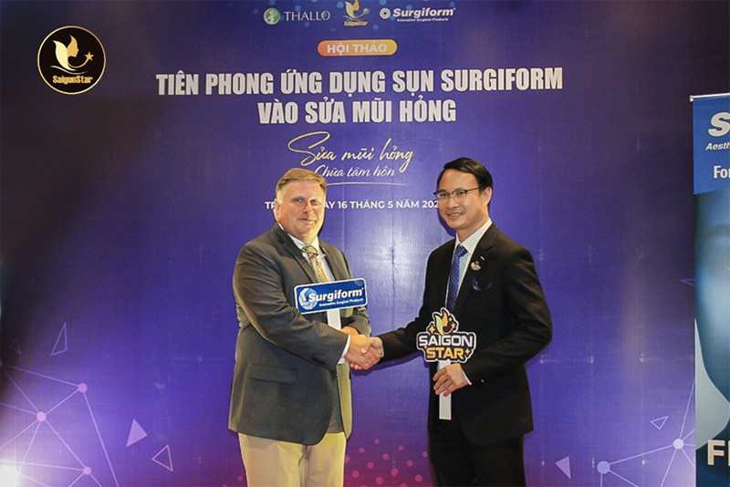 Hội thảo “Ứng dụng sụn Surgiform vào sửa mũi hỏng” (TP.HCM, ngày 16/5) là lần hợp tác thứ hai của BS. Nguyễn Hữu Hoạt - phụ trách chuyên môn tại Phòng khám chuyên khoa thẩm mỹ thuộc Công ty TNHH Thẩm mỹ viện Saigon Star với ông Matthew Fairfax - CEO Surgiform đến từ Hoa Kỳ.